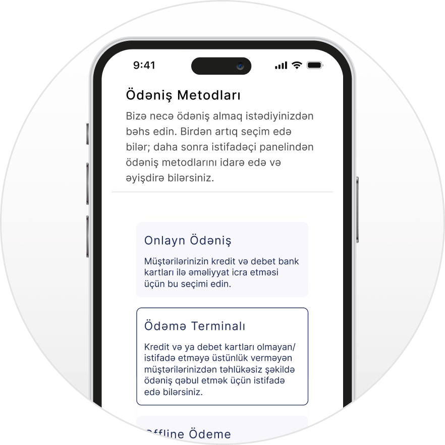Elə indi Paymes'ə üzv olun, ödəmə terminalı vasitəsilə kredit/debet bank kartı istifadə etmək istəməyən müştərilərinizdən təhlükəsiz şəkildə ödəniş alın.
